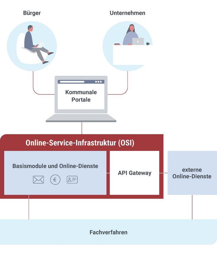 Wir bringen Tempo und Qualität in die Digitalisierung. Unsere modulare Online-Service-Infrastruktur (OSI) enthält alle Komponenten, damit Bürger*innen und Unternehmen auf Online-Dienste der Verwaltung zugreifen können. Ganz im Sinne des Onlinezugangsgesetzes (OZG).