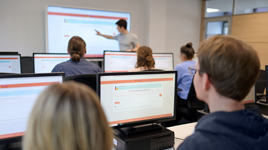 Im neuen Schulungszentrum in Halle (Saale) bieten die drei IT-Schulungsräume ausreichend Kapazität für zwölf Personen pro Schulungsraum.