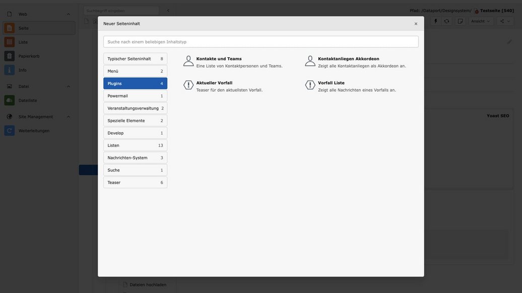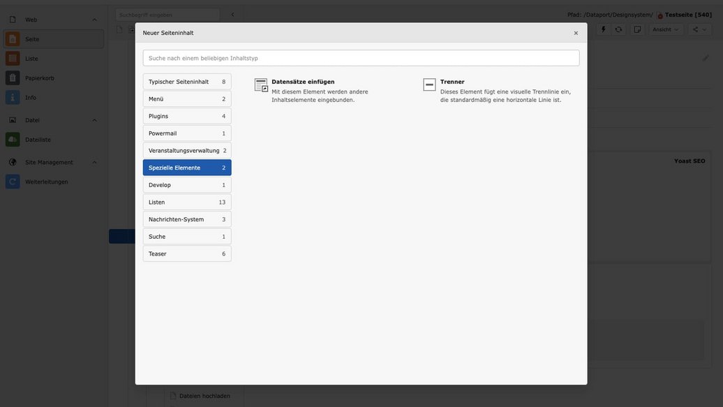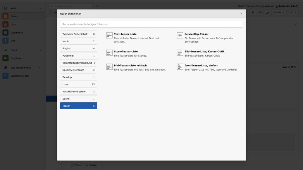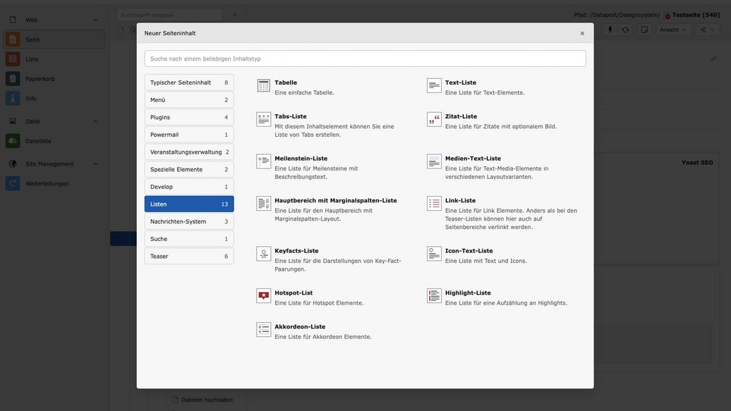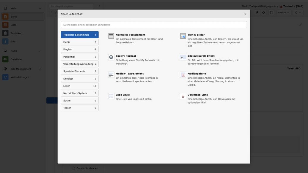Wählen Sie im aufgegangenen Popup ein Inhaltselement, das Ihren Anforderungen entspricht.