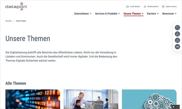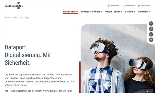 Die dritte Option „Standard Bild Rechts ohne Rahmen, wenn vorhanden“ zeigt das Bild auch im Hero an, jedoch entfällt die Abrundung und der rote Balken. Diese Option ist geeignet, wenn es sich bei dem Bild um eine Grafik oder einen Freisteller handelt.