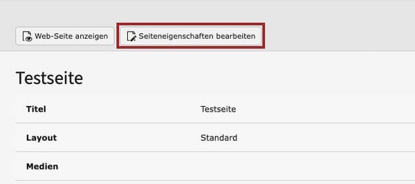 Wählen Sie die entsprechende Seite im Seitenbaum aus. Klicken Sie anschließend auf den Button „Seiteneigenschaften bearbeiten“ oberhalb des Inhaltsbereichs. Dann können Sie Einstellungen in den verschiedenen Reitern vornehmen. Wenn Sie Ihre Eingaben beendet haben, klicken Sie auf den Button „Speichern“.