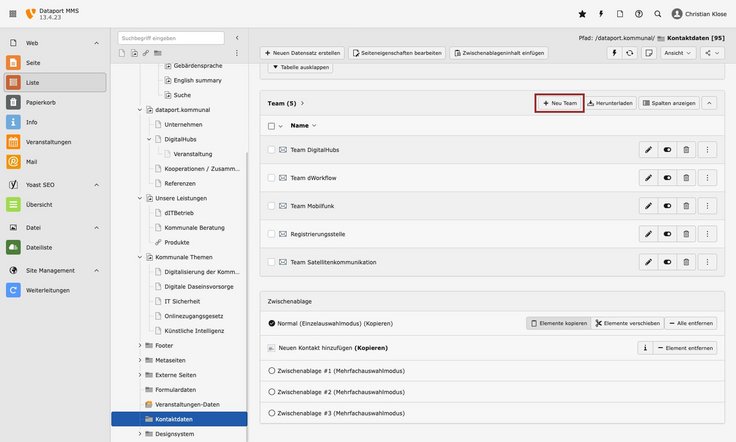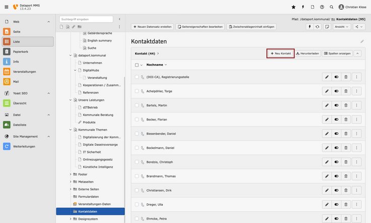 Kontakte und TeamsKontakte sind Personen, d.h. Mitarbeitende von dataport.kommunal und Teams. Kontakte werden als Datensätze gepflegt.
