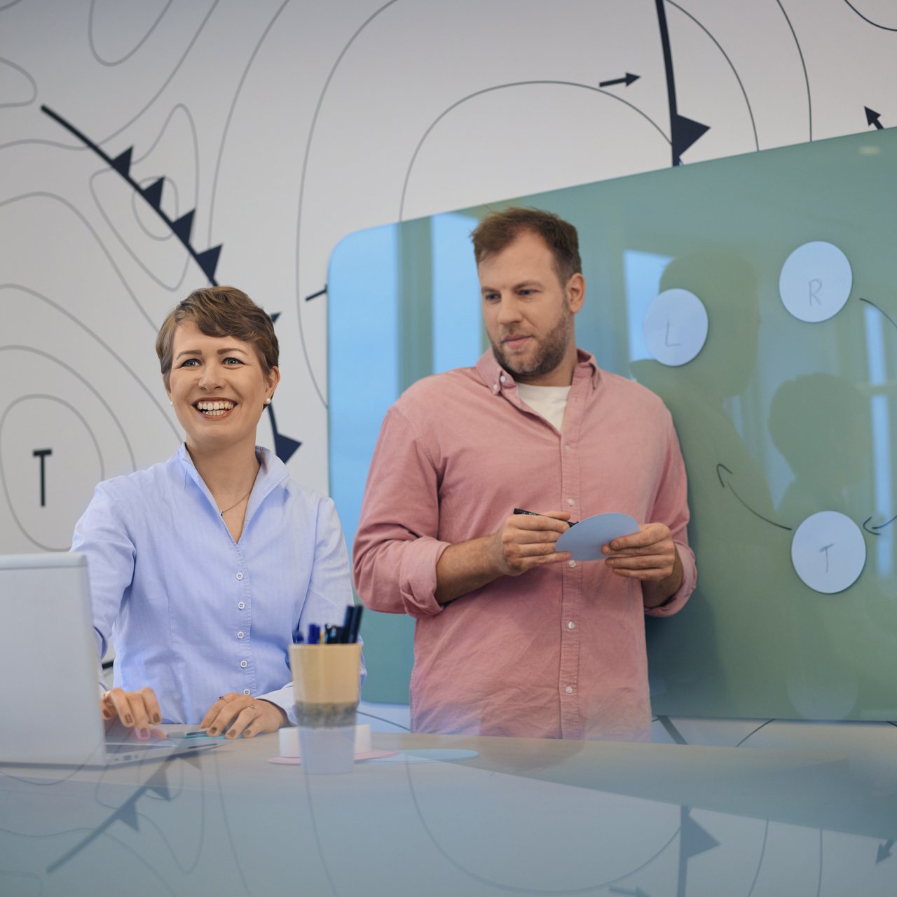 Für die Zusammenarbeit innerhalb unserer Projektteams setzen wir gerne auch kollaborative Tools wie DEON und Miro Boards bzw. ähnliche Werkzeuge ein.