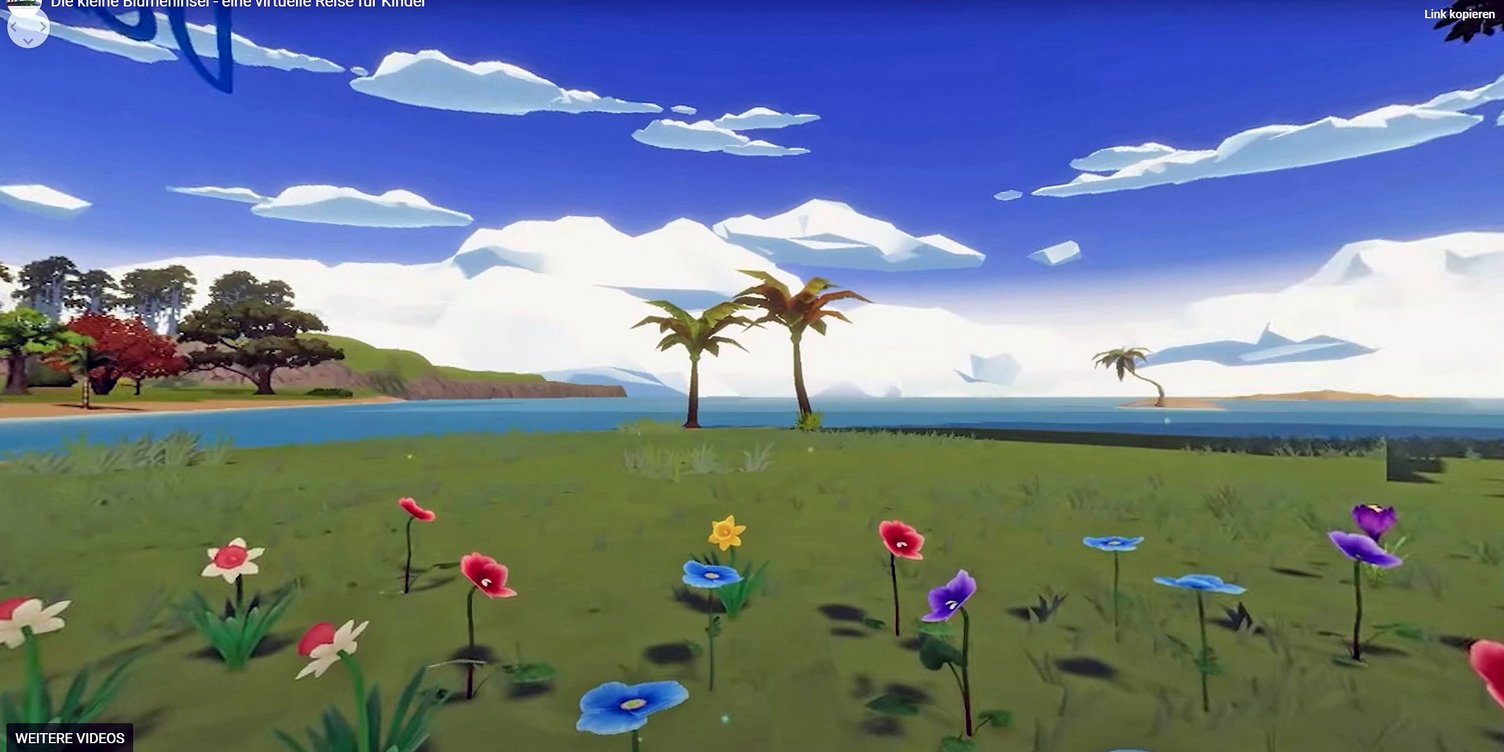Mit der VR-Anwendung „Die kleine Blumeninsel“ hat Dataport eine virtuelle Welt erschaffen, in der Kinder in Hospizen und Palliativeinrichtungen ihren Alltag mit der Krankheit vergessen und sich auf eine Reise in eine bunte Fantasiewelt begeben können. So spazieren die Kinder mit einer Blume durch verschiedene Landschaften wie Wüsten oder Wälder. Von dort gelangen sie auf eine Insel, auf der sie eine Blume pflanzen und mit einer persönlichen Botschaft versehen können. Mit jeder neuen Blume wächst die Blumeninsel, wobei alle Teilnehmer*innen die Botschaften der anderen lesen können.